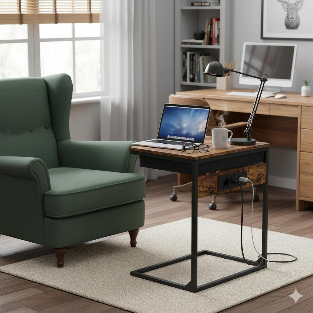 Malmo Bijzettafel - Laptoptafel - Nachtkastje - Banktafel - bijzettafel met laadstation