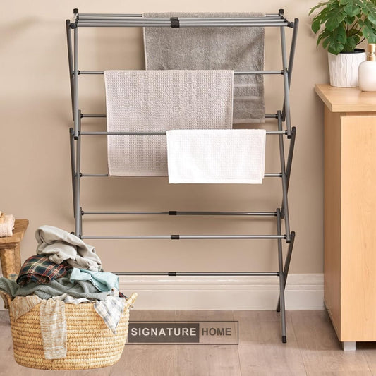 Vigo Droogrek - wasrek inklapbaar - 3 Tier - Wasrek uitschuifbare - Metalen - Wasserij Droogrekken - Donker Grijs- 44-76cm