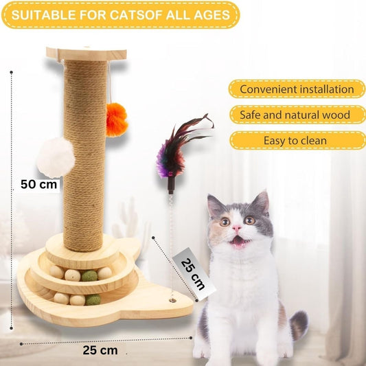 Ruby krabpaal - Krabpaal voor Katten 50cm - Kattenboom - Krabpaal met telescopische stangen - hout Sisal - Naturel bruin