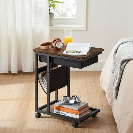 Miami Bijzettafel met lade - Laptoptafel met Wielen - salontafel - Industriel Stijl - Bruin Zwart