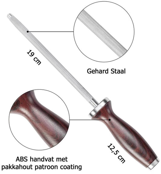 Messenslijper - aanzetstaal - Messen Slijpen Extra Grip - RVS - Hout look