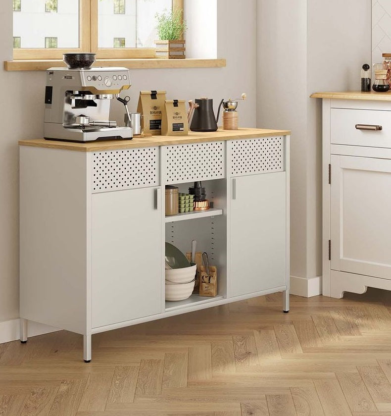 Veelzijdig gebruik: Dankzij de klassieke kleur en het eenvoudige ontwerp past deze stijlvolle kast gemakkelijk in elk interieur en kan hij gebruikt worden als dressoir in de keuken, tv-meubel in de woonkamer of opbergkast op kantoor.