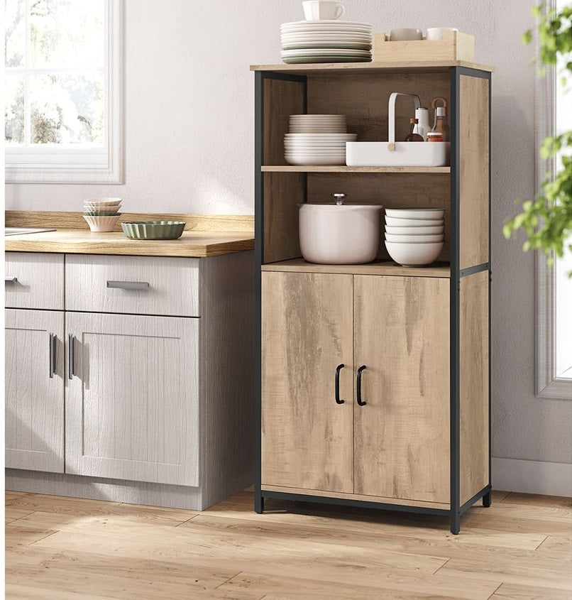 [Robuust en duurzaam] Het hoogwaardige spaanplaat en het massieve staal vormen samen een stevige, duurzame opbergkast die een sterke ondersteuning biedt voor je servies of andere spullen.