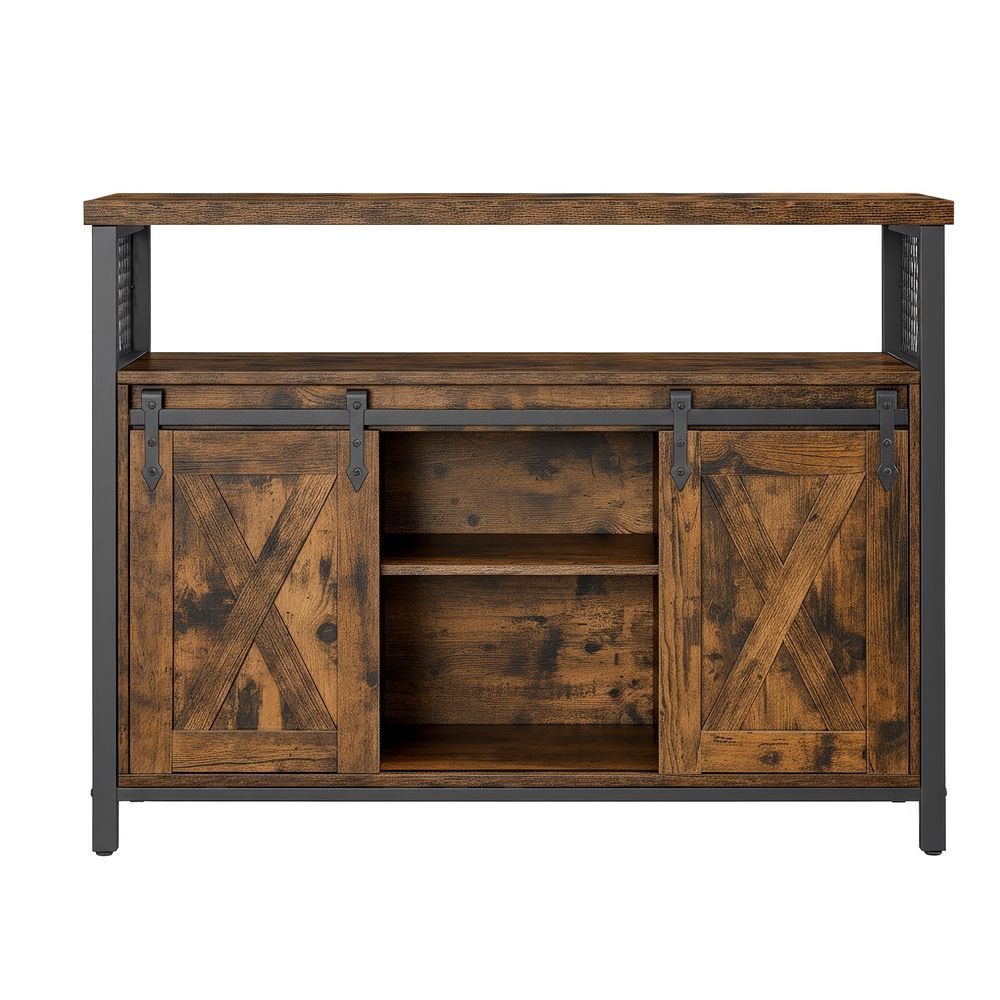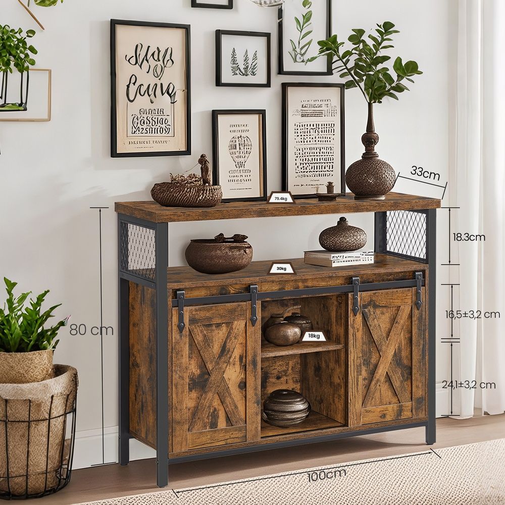 Sterk en stabiel: De combinatie van spaanplaat en metalen frame maakt dit dressoir stevig en robuust. Verstelbare poten zorgen ervoor dat de kast stabiel staat.