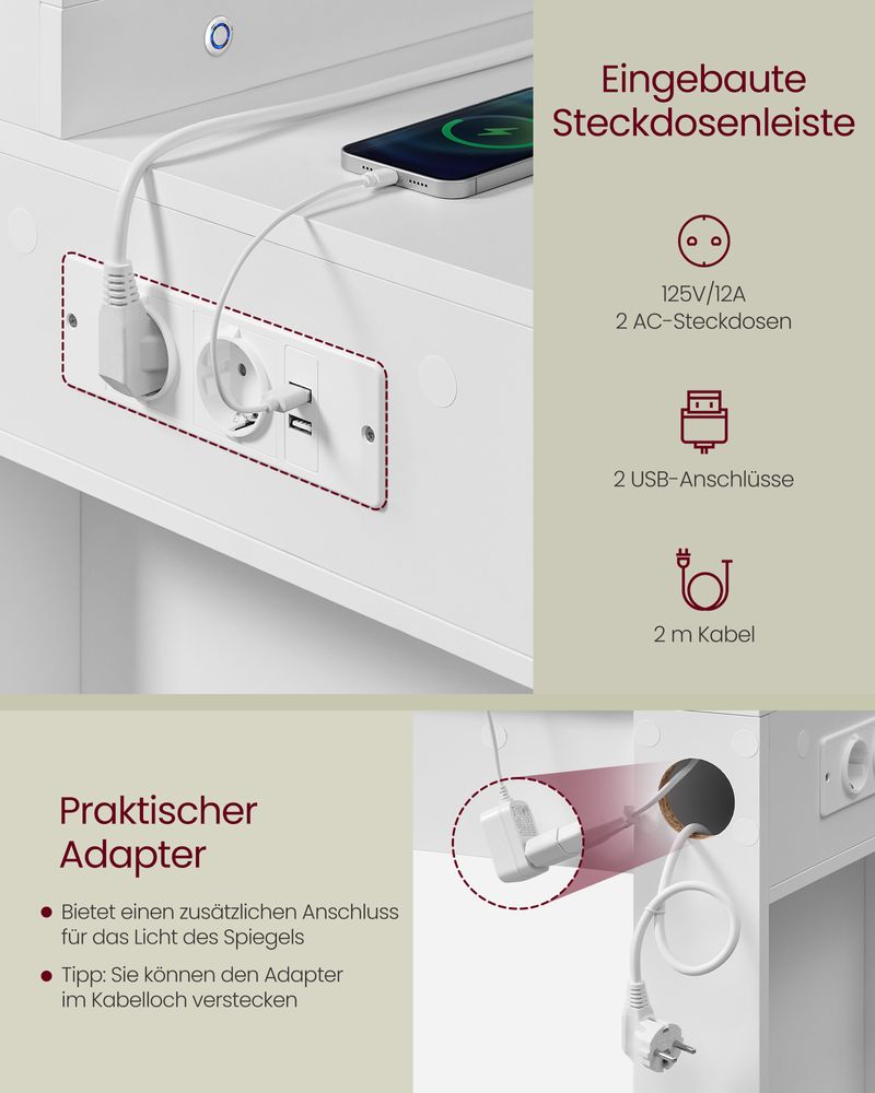 [Antikantelbeveiliging voor extra veiligheid] Bevestig de kaptafel aan de muur met de meegeleverde antikantelbeveiliging voor een veiligere omgeving.