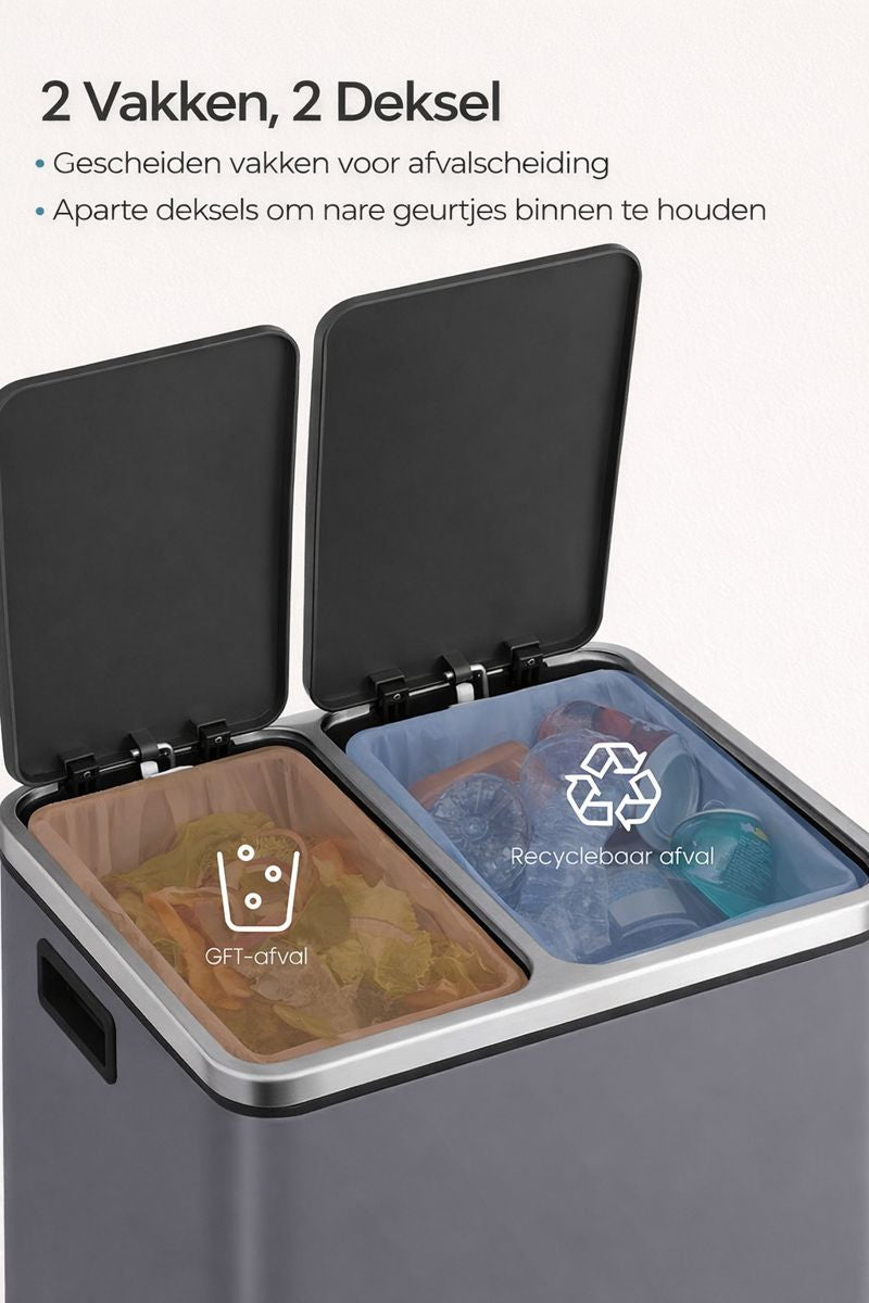 Signature Home Keuken Prullenbak 2 × 15 Liter – Afvalscheidingsbak met 2 Compartimenten en Deksel
