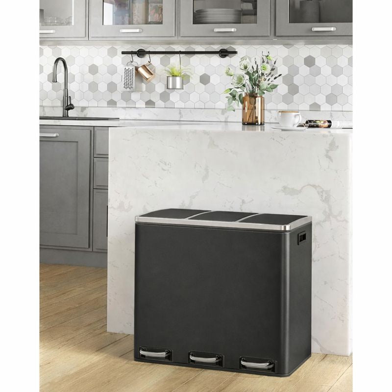 Signature Home Prullenbak met 3 Compartimenten – Afvalbak voor Afvalscheiding – 3-Vaks Vuilnisbak voor Keuken, Kantoor of Thuis – Recycling Prullenbak