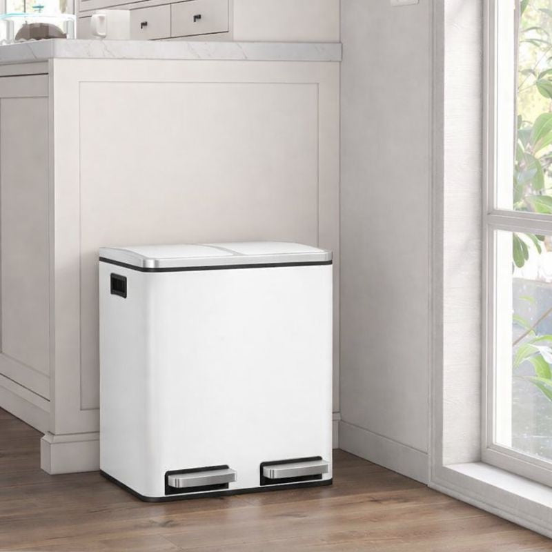 IN ÉÉN STAP GEREED: De pedaalemmer is voorzien van pedalen voor eenvoudig en hygiënisch openen. Hij heeft ook twee binnencompartimenten, waardoor je je afval per materiaal kunt scheiden – afval weggooien en sorteren is zo een fluitje van een cent!
