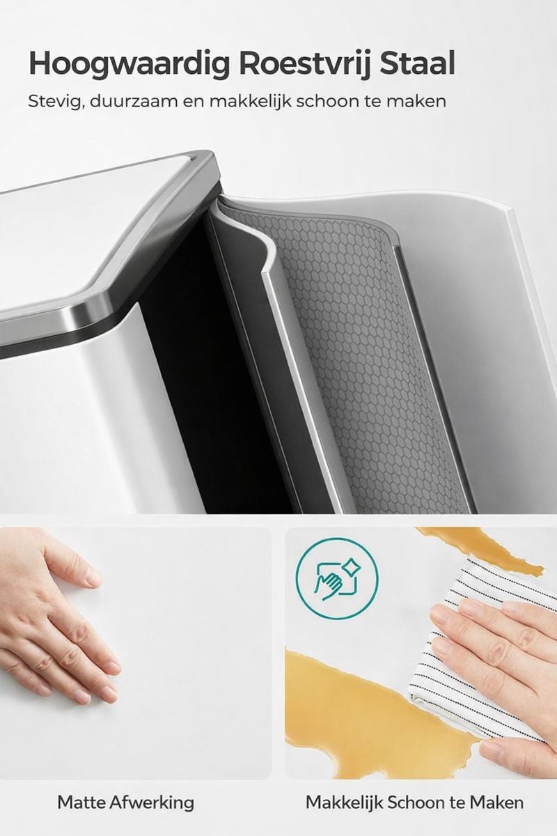 WAT JE KRIJGT: Een moderne afvalbak met 2 compartimenten die het sorteren van je afval ongelooflijk eenvoudig maakt. Trakteer jezelf op deze afvalbak en creëer een schoner huis.
