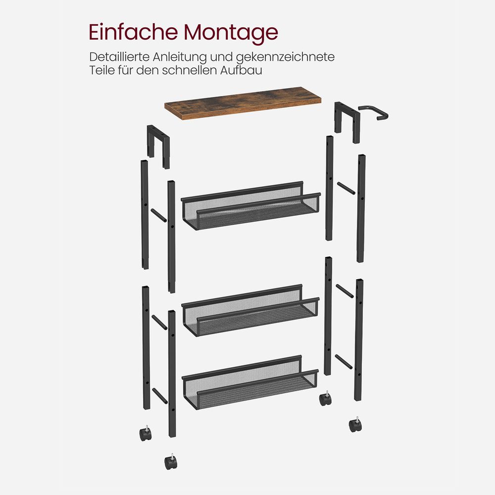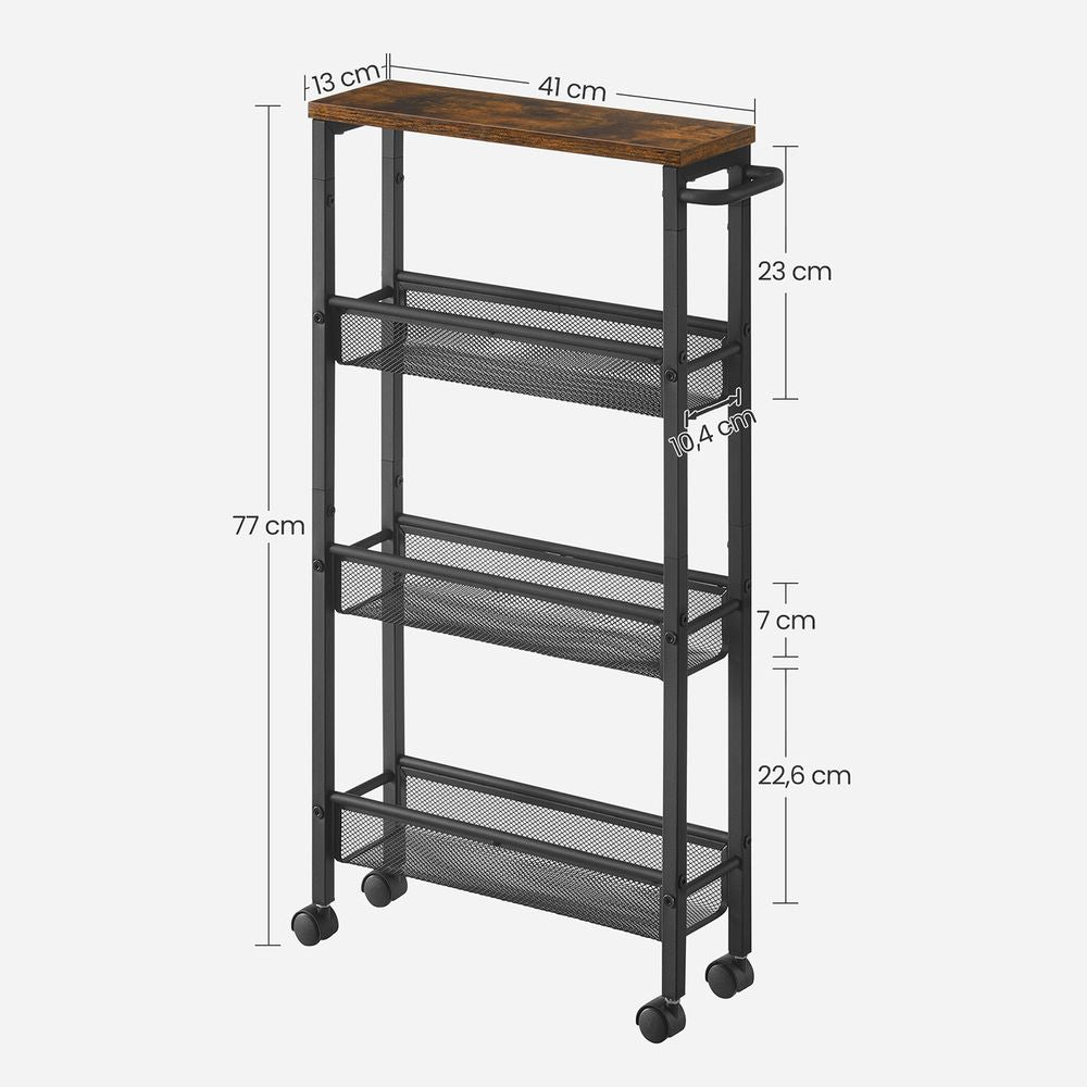 Signature Home Smalle 4-Lagen Keukentrolley op Wielen | Verrijdbare Opbergwagen voor Keuken|Ruimtebesparende Opbergwagen op Wielen