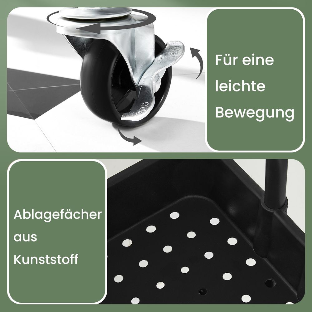 Mobiel: Uitgerust met 4 wielen, waarvan 2 met rem, kunt u deze kar gemakkelijk door elke kamer verplaatsen, wat uw dagelijks leven gemakkelijker maakt.