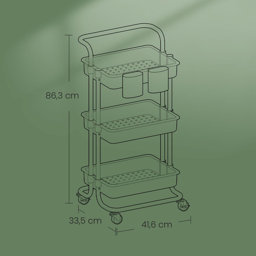 Betrouwbaar: De 3 niveaus zijn voorzien van een stevig metalen frame en garanderen duurzaamheid en betrouwbaarheid voor al uw opbergbehoeften.