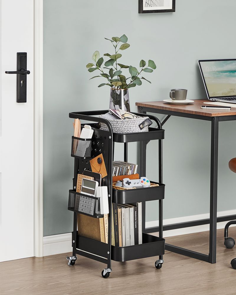 Signature Home Zwarte Verrijdbare Keukentrolley | Ink Black Rolwagen voor Opbergen & Serveren|Multifunctionele Keukenwagen op Wielen