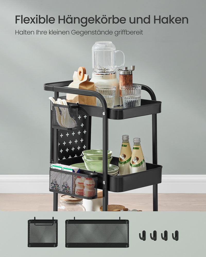 【EXTRA HANGRUIMTE】Deze serveerwagen is uitgerust met 2 metalen hangmanden en 4 haken, zodat u uw gereedschap en andere kleine spullen georganiseerd en binnen handbereik kunt houden – een ideale opbergoplossing voor uw huis!